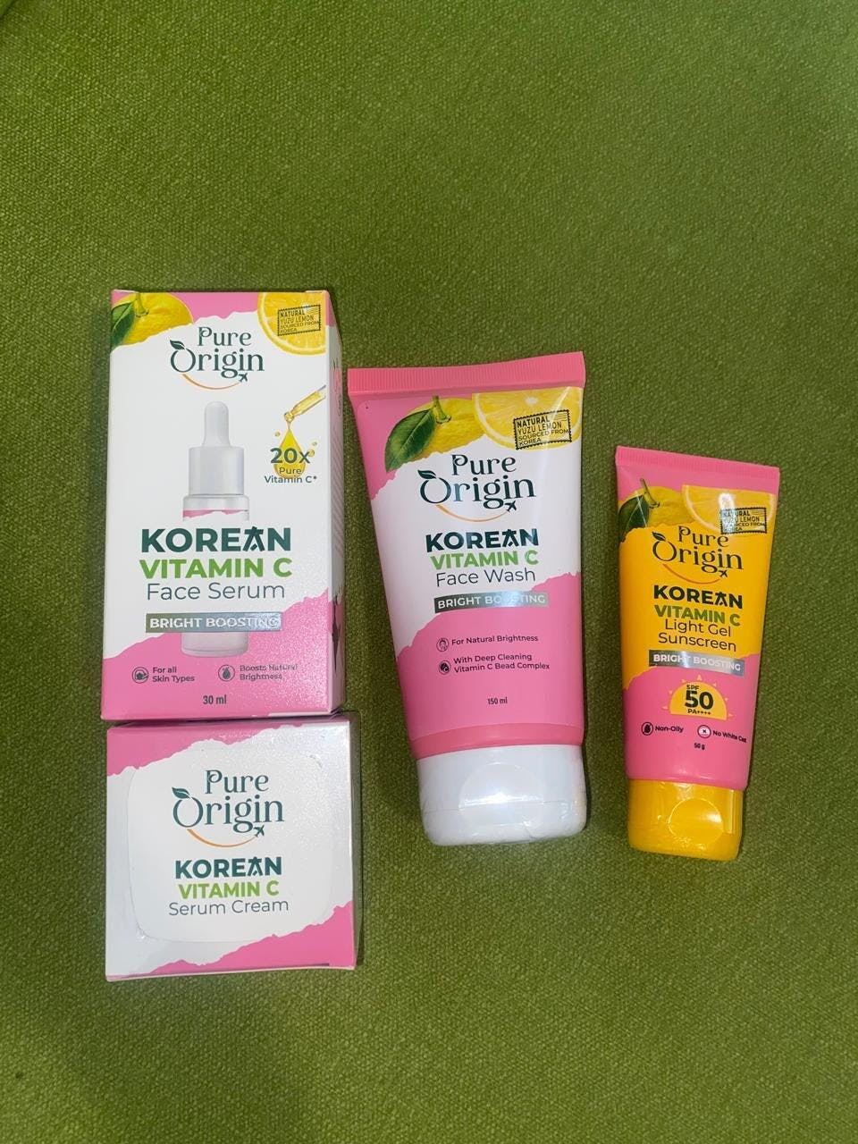 Brighten your skincare routine with the Pure Origin Korean Vitamin C All-Day Glow Kit. This powerful yet gentle combination of products is enriched with Pure Vitamin C to tackle dark spots, dullness, and uneven skin tone. Its lightweight formula absorbs effortlessly into the skin, combating dullness and restoring a natural, radiant glow. Perfect for everyday use, it improves skin texture and enhances its overall complexion.
